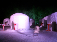 祭は湯西川渓谷沿いに並ぶ温泉街の所々に人が入れる大きさのかまくらが10コ程と