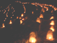 ロウソクを内包したミニかまくらぼんぼりが大量に置かれています。