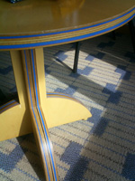 ハリボテを存分に見てから部屋全体を見ると一見拍子抜けなのですが、断面を強調した家具類、なんだか馴染みのあるパターンの壁紙・カーペットはなかなかなものかと。テーブル、ウチに欲しいです。