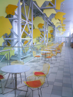 僕が注目したいのは建築云々よりも、内部用途です。地下駐車場ー1F屋内広場・カフェ・アートグッズショップ(青山のスパイラルのよう!)ー2F総合案内・託児所・オフィスー3,4F仙台市民図書館ー5,6F大小ギャラリーー7Fスタジオ・シアター・映像ライブラリー等々もりだくさん。でもこれは市の施設。だから基本的に全てタダ。自ずと市民が集まってしまっています。ついでに図書や映像、常時行われている何かしらの展示に触れるわけです。