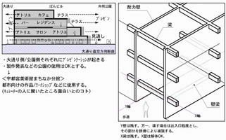 耐震に関わる柱壁を残し、スケルトンにした上で、公園と大通りの利点を活かす提案です。