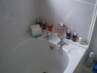 バスルームのボトル類。日本でもシティホテルとかに泊まれば見られる画像ですが、これが日常。
