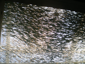 「暖流の魚」は1匹1匹がばらばらに自由に泳ぎまわっています。
